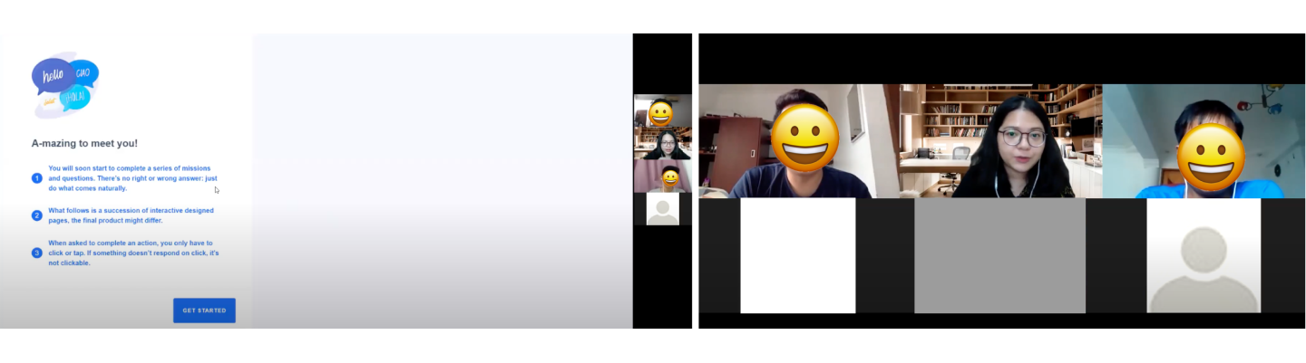 During the session, the client who acts as an observers, and other teammate who are notetakers are required to turn off their video camera so as not to distract the user. I started recording the interview session after receiving direct approval from the user.